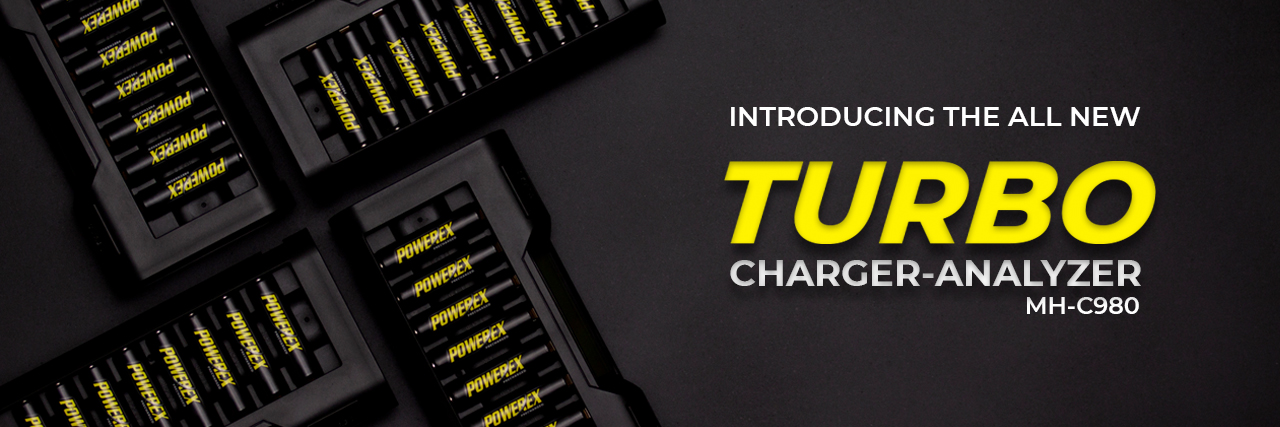 The Powerex MH-C980 Turbo Charger-Analyzer charges up to 8 AA or AAA nickel-metal hydride batteries in approximately 1 hour. This charger is the best combination of an 8-cell charger with battery health analyzing features. It has a special One-Touch Battery Health Analyzer with actual capacity readout to provide the most accurate data. The Turbo charge mode allows you to charge your batteries twice as fast while the default mode will maximize battery life. With the Thermal Management System, your batteries will stay cool during charge. For older batteries, you can use the Deep Battery Conditioning System to revitalize them. The large backlit LCD display allows you to take quick glance of the charging status.