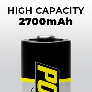 The Powerex PRO AA Rechargeable Batteries (1.2V) 2nd Generation Nickel-Metal Hydride (NiMH) batteries with ultra high capacity of 2700mAh. These batteries are built for performance and optimized for high drain devices by providing increased run time and improved low temperature performance down to -4°F (-20°C) and high temperature performance up to 122°F (50°C). They can be recharged up to 500 times. The batteries are capable of being stored for an extended period of time and will retain up to 60% of their charge after 5 years of storage.
