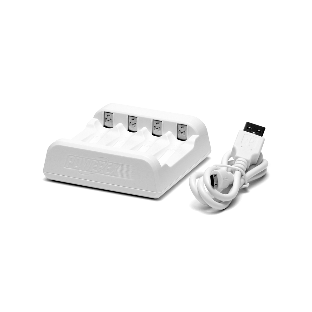 The Powerex MH-C401U USB Smart Charger charges 1-4 AA or AAA nickel-metal hydride (NiMH) or nickel-cadmium (NiCd) batteries. AA batteries take about 4-5 hours to charge, while AAA batteries take about 2 hours. The charger has individual LED lights to indicate the charging status for each battery. Charge from any 5V/2A USB power source and conveniently charge with the included USB cable (AC adapter NOT included). The charger is great for use in the home or office.