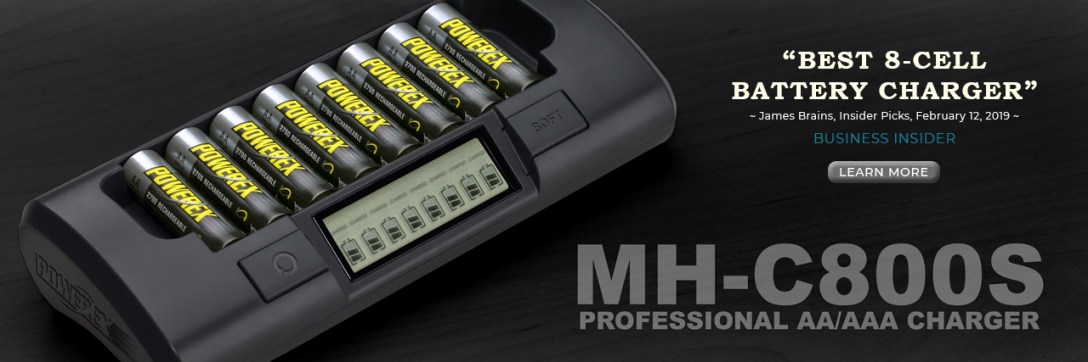 Business Insider names the Powerex MH-C800S 8-cell Smart Charger as the "Best 8-cell battery charger"! original article Why you'll love it: If you frequently use AAs and AAAs in your electronics, the Powerex MH-C800S 8-Cell Smart Chargerwill keep your batteries juiced and extend their life. The Powerex MH-C800S 8-Cell Smart Charger is manufactured by Maha Energy, an organization… Continue reading Powerex MH-C800S 8-Cell Smart Charger named “Best 8-cell battery charger” by Business Insider